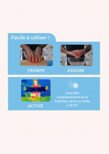 Serviette rafraîchissante (100 x 30 cm), activable à l'infini grâce à l'incrustation de micro-cristaux de jade.